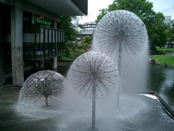 The nozzle of a large no of independent nozzles mounted on top of a central cast bronze ball. Depending upon the adjustment of the nozzle tips the effect can change from fine mist to a fine film of water creating a large ball of mist or bell effects that look very appealing especially when it at night. The visibility of the ball with multiple arms when not in operation is a drawback of this nozzle and its use is preferred in public parks or play areas. This nozzle requires clean filtered water in the pool and a very fine mesh screen on the pump suction to keep the nozzle from getting blocked with debris.